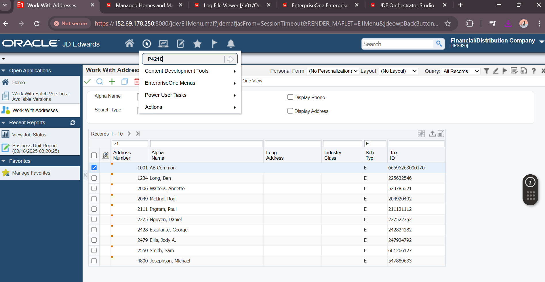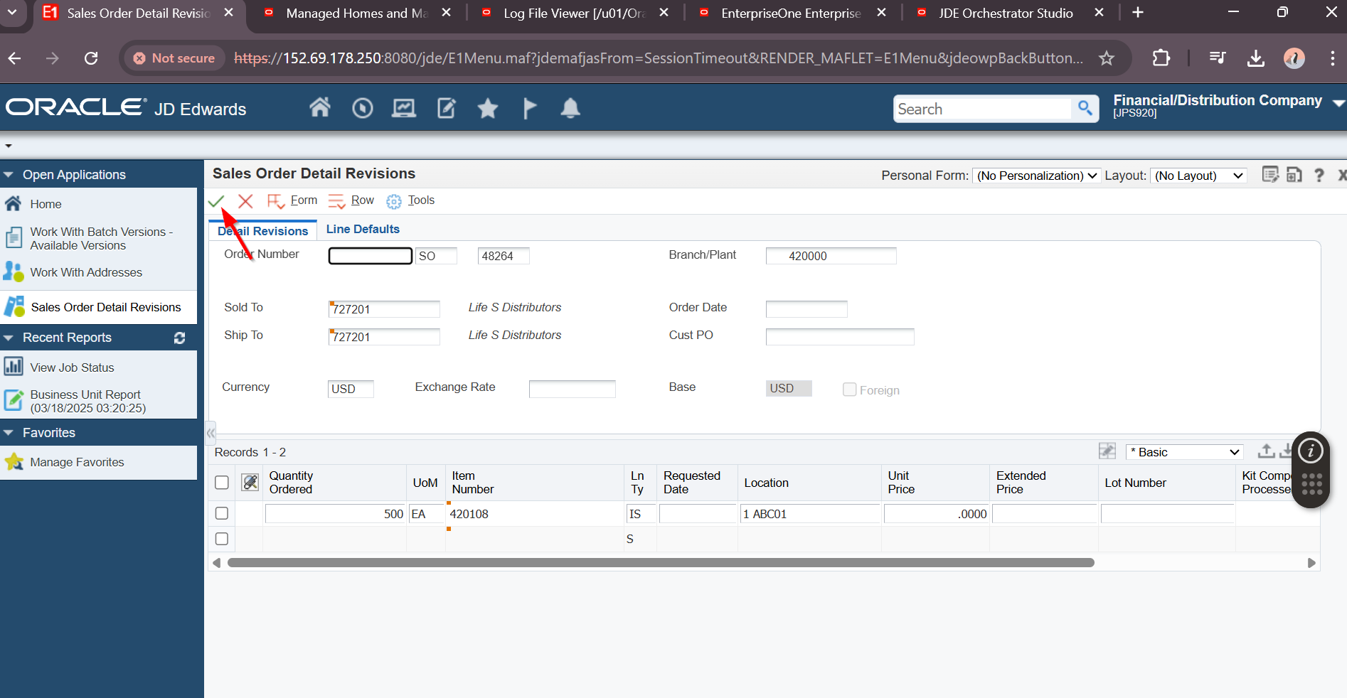 Navigate to appropriate URL to review JDE Orchestration Studio