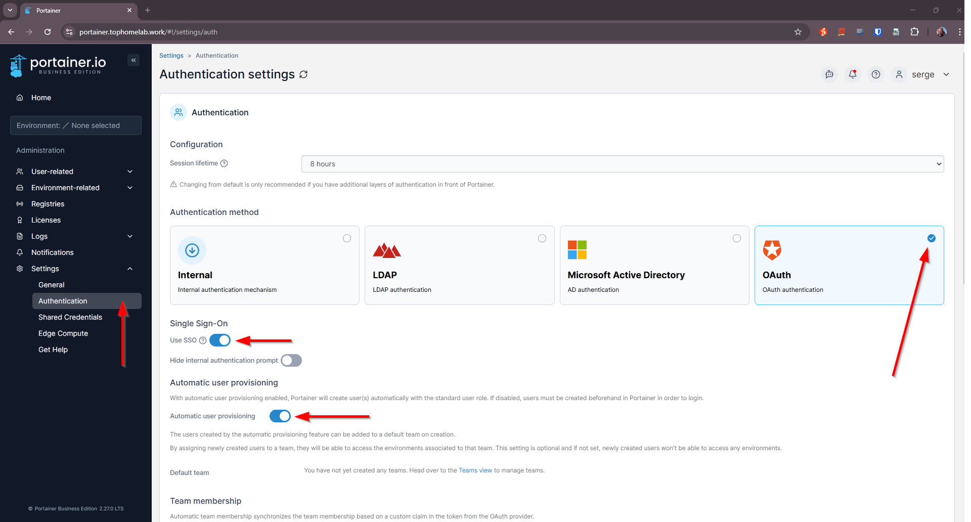 Portainer OAuth configuration