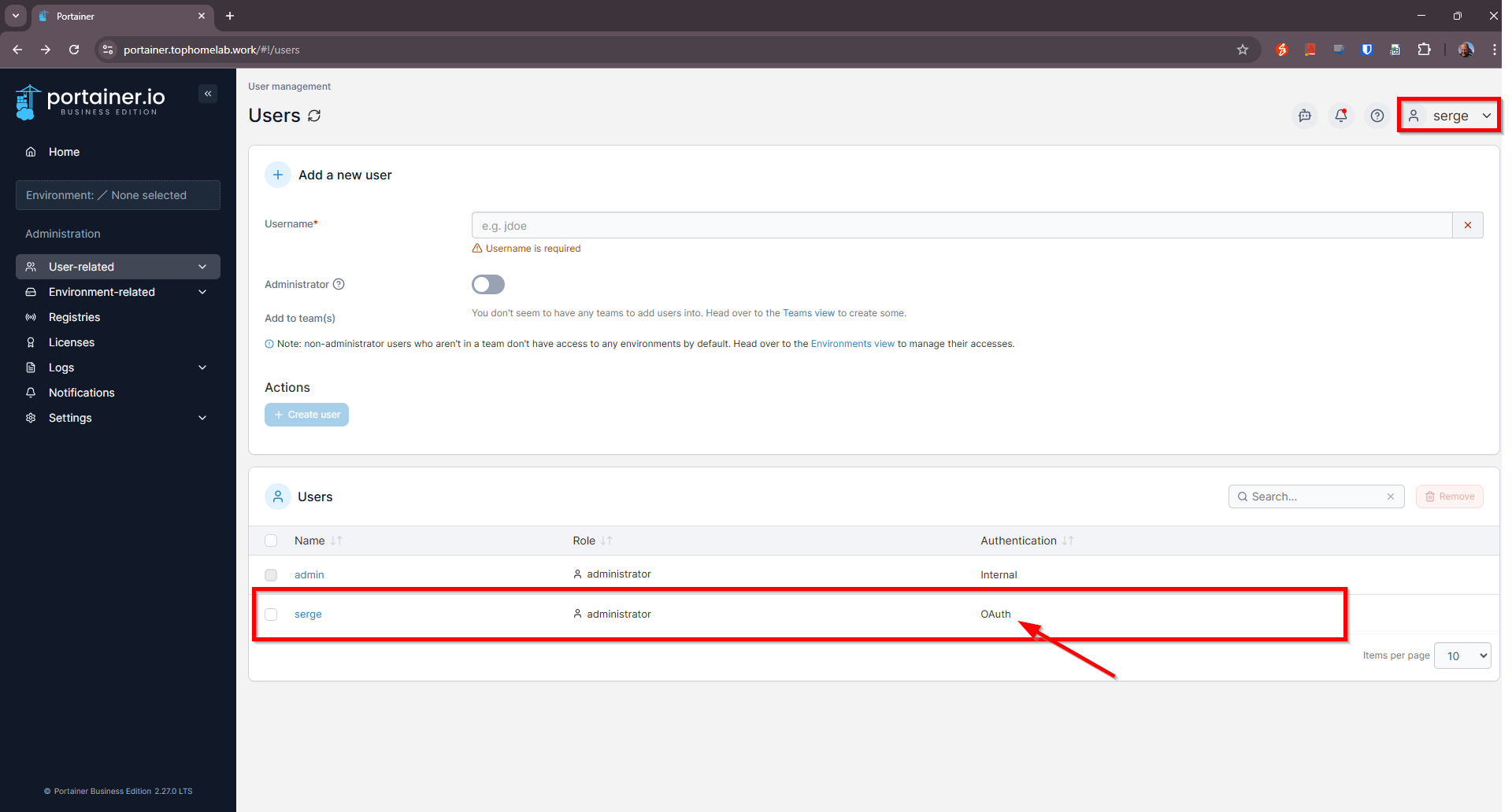 Navigate to portainer url